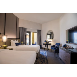 Ideally located along Dubai's famous leisure and retail strip known as “The Walk”, Jumeirah Beach Residence (JBR), you will experience the height of comfort at Amwaj Rotana Hotel. Guests staying at the hotel can benefit from the features around the vicinity such as the Beach Mall which offers a children's water park, Jumeirah Beach, retail and entertainment options. Presenting a portfolio of 301 tastefully furnished rooms and suites including the prestigious Club Rotana offering bespoke exclusive services for guests, Amwaj Rotana boasts the largest rooms along JBR each with its own balcony facing the Arabian Gulf and Palm Jumeirah. Complimentary WiFi is also available in all rooms and public areas. With four great dining concepts offering Italian, American/Japanese, British/American and International cuisine as well as live entertainment, happy hours, theme nights and more, guests can expect a fun-filled and exciting gastronomic experience. The hotel offers a conference centre designed for companies looking for an outstanding, modern meeting and conference venue. Recreational activities on the hotel grounds include the Bodylines Fitness & Wellness Club that comprises of two temperature-controlled adults' and kids' swimming pools, a fully-equipped gymnasium, Jacuzzi, steam rooms, sauna and a spa. The kids get to have their own fun too with Flipper's Kids’ Club activity centre.