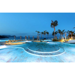 BLESS Hotel Ibiza sits only 25 minutes from the center, nestled in the exclusive cove of Cala Nova in Santa Eulalia de Río, right in front of the sea. You pick the side of the island that you want to connect with: turn down your holiday with pure relaxation and nature or turn it up with a daring celebration and magical meetings. The choice is yours. Body, mind & soul - Fast paced lives call for a pause from time to time. At our health and wellness centre, our guests can savour a moment to themselves. Namaste. • Magness Soulful Spa, featuring exquisitely decorated rooms inspired by the invigorating herbs of Ibiza, is the perfect escape after a high-energy event or a day in the sun. Guests can indulge in a variety of massages and aesthetic treatments, as well as benefit from luxurious products and amenities, personalized spa packages, a serene pool and a tea bar. • At our state-of-the-art Fitnic Power Gym guests can keep up their daily fitness habits, bouncing into action through our virtual classes at Sweat-box or getting a full-body workout with our personal trainers (upon request). • Our salon offers guests stylish hair and beauty services. Flavours - A party of flavours dancing in every bite. A cold beer or a cocktail to wash it down. Vacations are all about feeding cravings, and egos of course, which is exactly what happens in each of our exquisite restaurants and bars: • 10 Michelin star winner Martín Berasategui surprises taste buds and senses alike in his new signature á la carte restaurant, Etxeko, showcasing a variety of innovative and healthy creations, based on Basque gastronomy. • Salao Atlantic Restaurant - á la carte - allows guests to indulge in the pleasures of the Atlantic and Mediterranean with a touch of Andalusia, offering an exclusive ambiance inspired by Ibiza and the Ses Salinas salt mines.