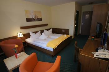 Ideal for business trips, short breaks or meetings and celebrations, just a short drive from the A2 on the edge of downtown. Large free parking. Our restaurant offers seasonal and international specialties. In our pub Friedel with bowling alleys, you can relax in the cozy atmosphere of the day or something sporlich press. Our hotel rooms are equipped for example with W-LAN, LAN, satellite TV, telephone, shower and toilet.