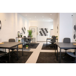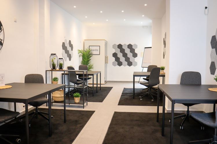 You are planning a conference, a meeting or another company event for up to 18 people? Coworking Mallorca offers you the perfect meeting room on Mallorca, directly at the Playa de Palma. What are your requirements for your seminar room? Super comfortable chairs, perfect air conditioning, modern equipment such as projector and screen, free high-speed internet with 600mBits, free parking in the immediate vicinity and delicious Nespresso coffee? Coworking Mallorca meets all these requirements and much more as a conference location! You can book our popular open space with about 60m² exclusively for your next company meeting.
