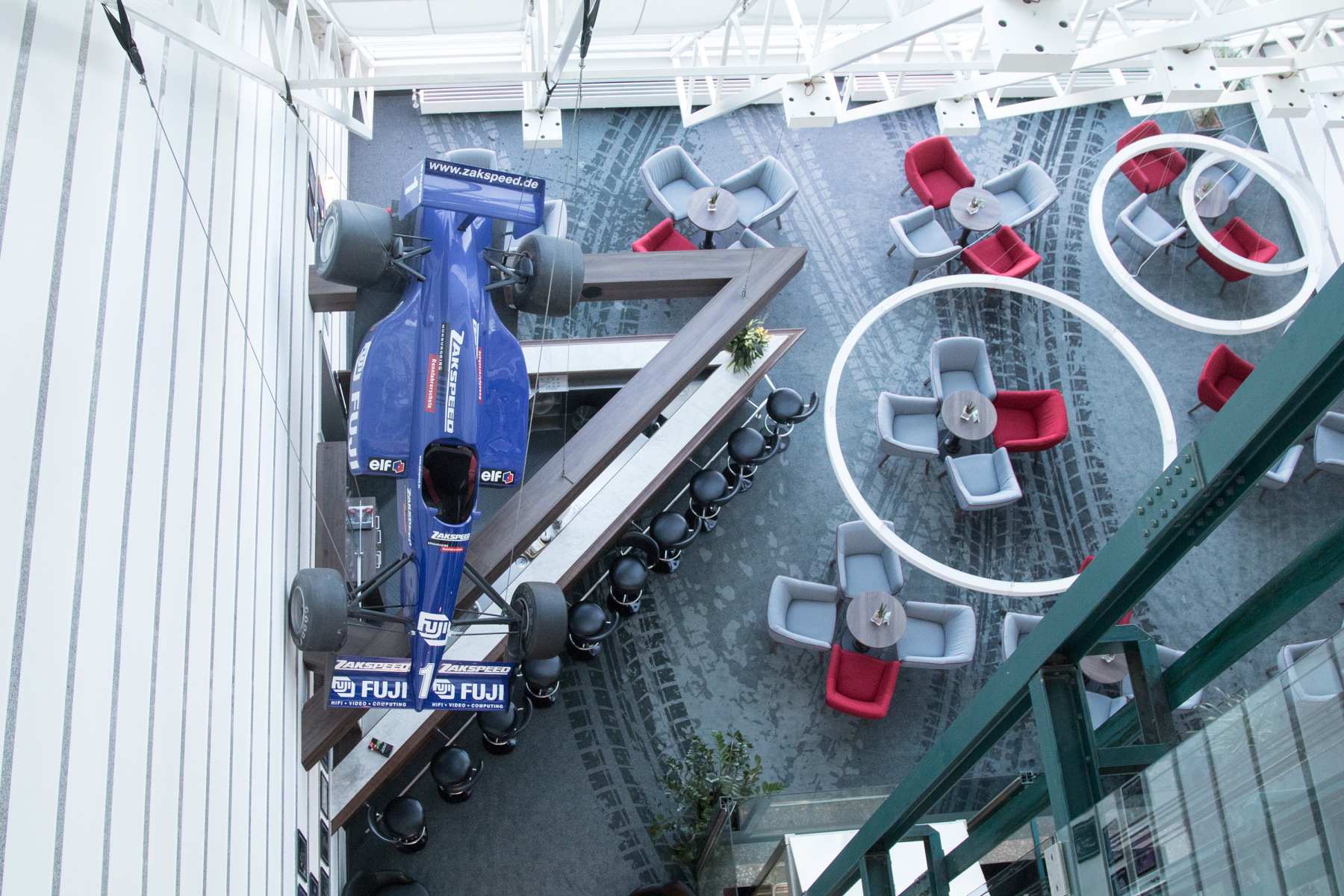 Whether you are traveling alone on business and only need bed and breakfast or if you would like a bit of added comfort to better enjoy a family vacation. Each of our 207 rooms afford a wonderful view of the beautiful Eifel countryside and the imposing Nürburgring. On race days, the comfort rooms with balconies are transformed into exclusive race boxes with a perfect view of the straight. All the rooms are elegantly and innovatively furnished, have satellite television, mini bar as well as an ambience that meets the requirements of the business traveler in particular. The 14 conference rooms are car accessible and light-flooded. The meeting rooms are ideally suited for congresses, incentives, product presentations as well as family celebrations. The rooms are air-conditioned and can be flexibly combined. For relaxation you will find in our hotel a fitness area with modern strength and cardio equipment, steam bath and sauna. In the restaurant "Fascination" our hotel offers a varied gastronomy and the museum-like cockpit bar invites you to have a drink. Our reception team is available 24 hours a day.