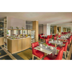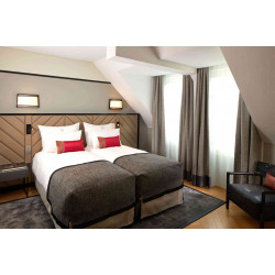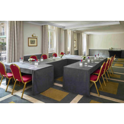 Natural light: The many large windows of our Paris conference room flood the space with natural daylight, making for a more pleasant atmosphere for your attendees. High-speed Wi-Fi: Stay connected to your emails, text messages, instant messaging system, video conferencing/calling platforms, and the worldwide web with our high-speed Wi-Fi. You and all your delegates will receive Wi-Fi access. LCD projector: Use our LCD projector and screen for your PowerPoint presentations, slide shows, video calls, and other media, enjoying crystal-clear visuals. Flipcharts and markers: Flipcharts and permanent markers are available in our meeting space in Paris, should you need to jot down important points, illustrate talking points, draw a graph or Venn diagram, or make notes during networking or brainstorming sessions. Stationery: Our events team will ensure that you and your attendees receive notepads, pens, and other stationery you require. Soundproofing: Our hotel’s meeting room is soundproofed, assuring you of privacy and that you do not need to worry about disturbing other guests.