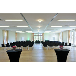 The 8 meeting rooms of the hotel offer space for up to 320 participants. All of the meeting rooms are equipped with modern conference technology and have daylight. Our team has gained a lot of experience with arranging meetings, conferences, trainings and all sorts of events. In addition to the meeting rooms we have 4 Event Locations like a house at the lake and a hut in the forest.