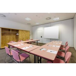 All rooms are equipped with daylight, black-out, video-screen, overhead projector, flip chart, pin board, presentation kit. Upon request: beamer, video camera, TV, VCR and slide projector.