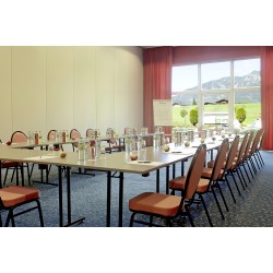 The KUHOTEL by Rilano stands for relaxation from everyday stress and space for individuality. The event room on the ground floor with 78 m2 offers space for up to 20 participants and has daylight and an unobstructed view of the stone slab massif. Blackout, air conditioning and modern conference technology are the expected standard.