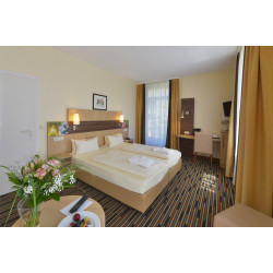 Arrival | Distances | Parking: Highway 7 km | Train station 0.3 km | Airport 80 km Parking 250 | Chargeable | of which 4 electric parking spaces Room: 113 rooms, 212 beds, all with shower / bath & WC, minibar drinks, Sky, set TV, ISDN connection, WLAN, room safe, 6 non-smoking floors. Information: All conference packages are per person and incl. Meeting room, standard technology and coffee breaks: • Conference half-board from € 49.00 (including lunch) • Conference fee from € 62.00 (including lunch and dinner) Overnight including breakfast from 86,00 € per person Gastronomy | Features: Restaurant "Leiningers" with internal. & Regional specialties; Hotel & casino bar; Casino Bad Dürkheim Fitness | Wellness | Leisure: Daily free admission to the wellness & fitness area "Vitalis" with pool (4 x 6 m), saunas, solarium and relaxation rooms. Beauty Lounge Medical Day Spa with massage and beauty treatments. Free entry to the casino (classic game, slot machine game). Spa park directly at the house. Wine trail, numerous cycling, Inliner and hiking trails starting at the hotel. Program suggestions | Meeting Ideas: • wine tasting • Outdoor Teambuilding & Events (Raft Building, GPS Mystery Outlet, Climbing Forest, Low Rope Course) parcour) • Segway tours • Wine tasting in the Doktorenhof • Casino management / explanation of the game in the house • Wagon ride with picnic in the vineyards • Original Elwetritschejagd • Relaxation program for meetings and seminars at the Beauty Lounge Medical Day Spa