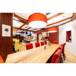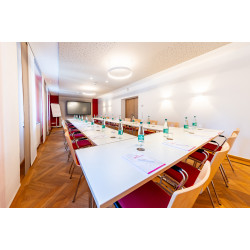 Our location—quiet yet central and conveniently accessible—offers ideal opportunities for meetings and celebrations. All participants can reach us easily, and our offerings—from the rooms to the service—ensure the perfect setting for your successful event. For your seminars, training courses, conferences, or private events, our “Bridge Floor” offers elegant rooms with air conditioning and natural light. Every window in our conference rooms is equipped with roller blinds and can be darkened individually. Take advantage of the dynamic possibilities of the modern meeting room with our new 86-inch multi-touch screens from BENQU, also with Intel All-in-one system! The chef himself cooks here, and everything is fresh every day. Your conference participants always have the choice between meat, fish, or vegetarian options, which they can conveniently select during their first coffee break. We are centrally located in the beautiful bridge district of Frankfurt-Sachsenhausen, making us the ideal starting point for an exciting experience after a conference in diverse Frankfurt am Main. Our rooms at a glance: - “Alte Brücke” for up to 22 people, with U-shaped or block seating - “Eiserner Steg & Holbeinsteg” for up to 24 people with U-shaped or block seating or parliamentary seating Here, the rooms can be divided into 17m² and 26m² sections. With cinema seating, 45 people in both rooms Circle of chairs, 35 people