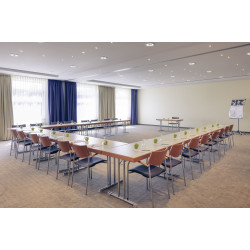 Our 183 sq. ft. (17 m2) "Venedig" meeting room is air conditioned and has space for up to 12 people to work undisturbed. The room is carpeted and offers WIFI and natural light. Tables and chairs can be arranged in block or cinema formation.