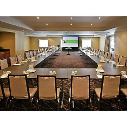 Outdoor terrace is located on the 2nd floor. Terrace has city skyline views and can cater up to 200 people for cocktail parties. Access by stairs or lift. Direct access from Town Hall room or prefunctional area.