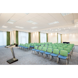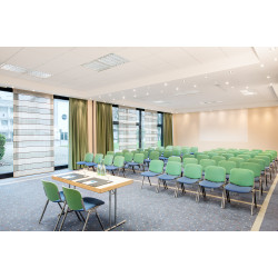 The various business services of our hotel are at your demand whenever you require them for a seminar, meeting or large event. 5 multifunctional conference and seminar rooms can be separated and combined thanks to mobile walls, allowing for meetings with up to 200 people. They are fully air conditioned and equipped with the latest conference technology. Please be informed, that we continue to display our standard meeting room capacity. In case that any COVID restriction or regulation applies to your request (destination, size or date of the planned event), the selected hotel will apply the corresponding restrictions during the quotation process. Our business service team will happily assist you in every detail of planning and organization.