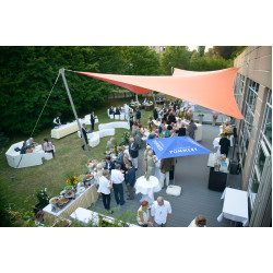 The "Vaihinger Saal V" is air conditioned and measures 1313 sq. ft. It has a parquet floor, natural light and Wi-Fi access. You can use it for stylish events with up to 120 participants, or combine it with the other rooms.