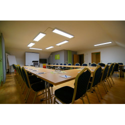 The large conference room "Rheinblick" you can book "blockwise" for different time windows. In the break you can enjoy the view of the Rhine from high above or relax on the ground floor on the newly designed hotel terrace or in our conservatory. "Rheinblick" (at least 10 to 40 people) Our new modern conference room offers space for up to 40 people. In addition, the meeting room has a separate conference table for 10 people and a separate coffee kitchen. or our "Flosserstube" Our new conference room can accommodate up to 10 people. The conference room has TV, coffee machine and on request via screen / beamer.
